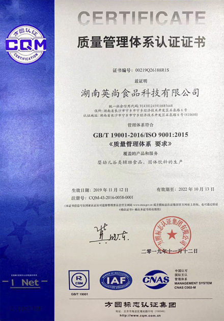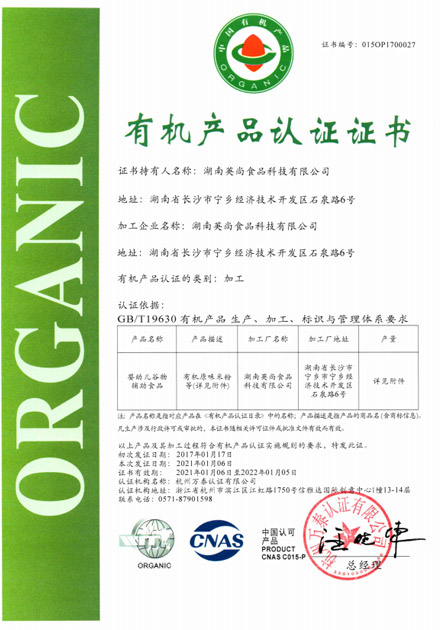 嬰尚工廠通過最新國家審查標(biāo)準(zhǔn),獲得最新特殊膳食食品(嬰幼兒谷類輔助食品)生產(chǎn)許可證(SC證)。