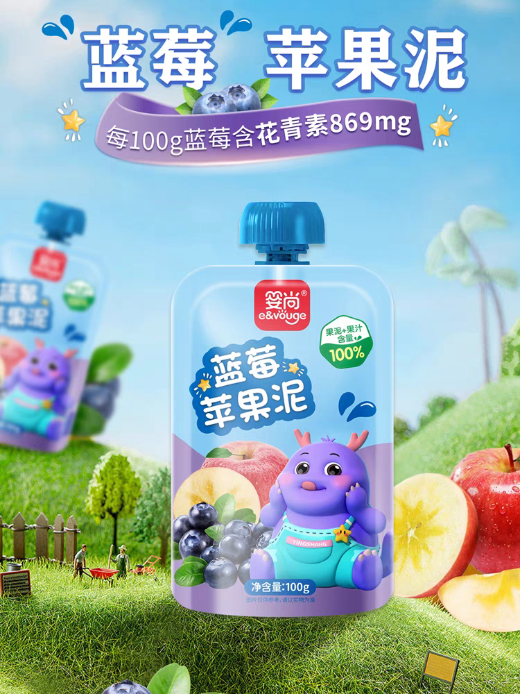 嬰尚藍(lán)莓蘋果選用泥智利????進(jìn)口的蘋果、藍(lán)莓,好品質(zhì)、無添加,每100g藍(lán)莓含花青素869mg,助力寶寶視力健康發(fā)育